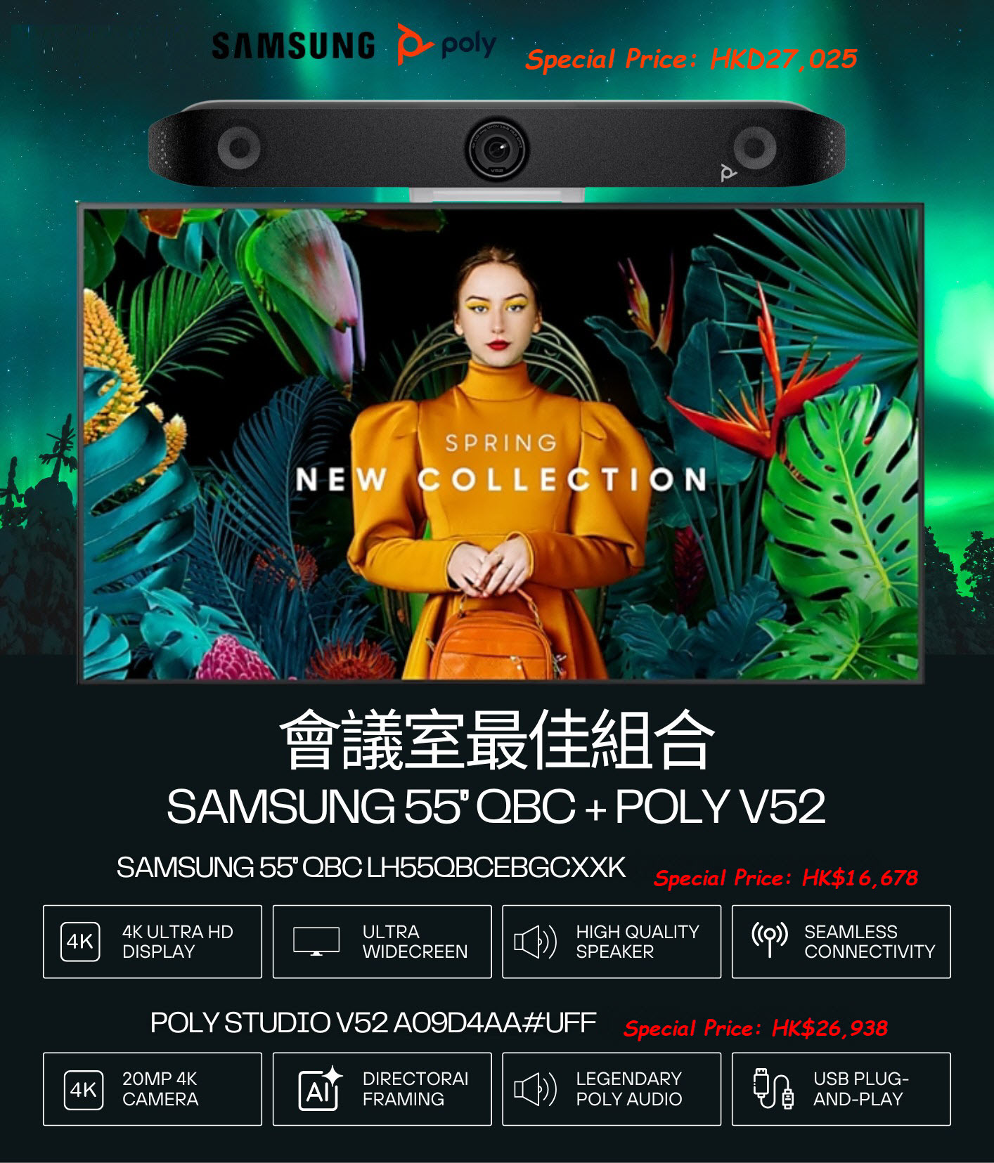 SAMSUNG 55" OBC + POLY V52 Conference System Bundle